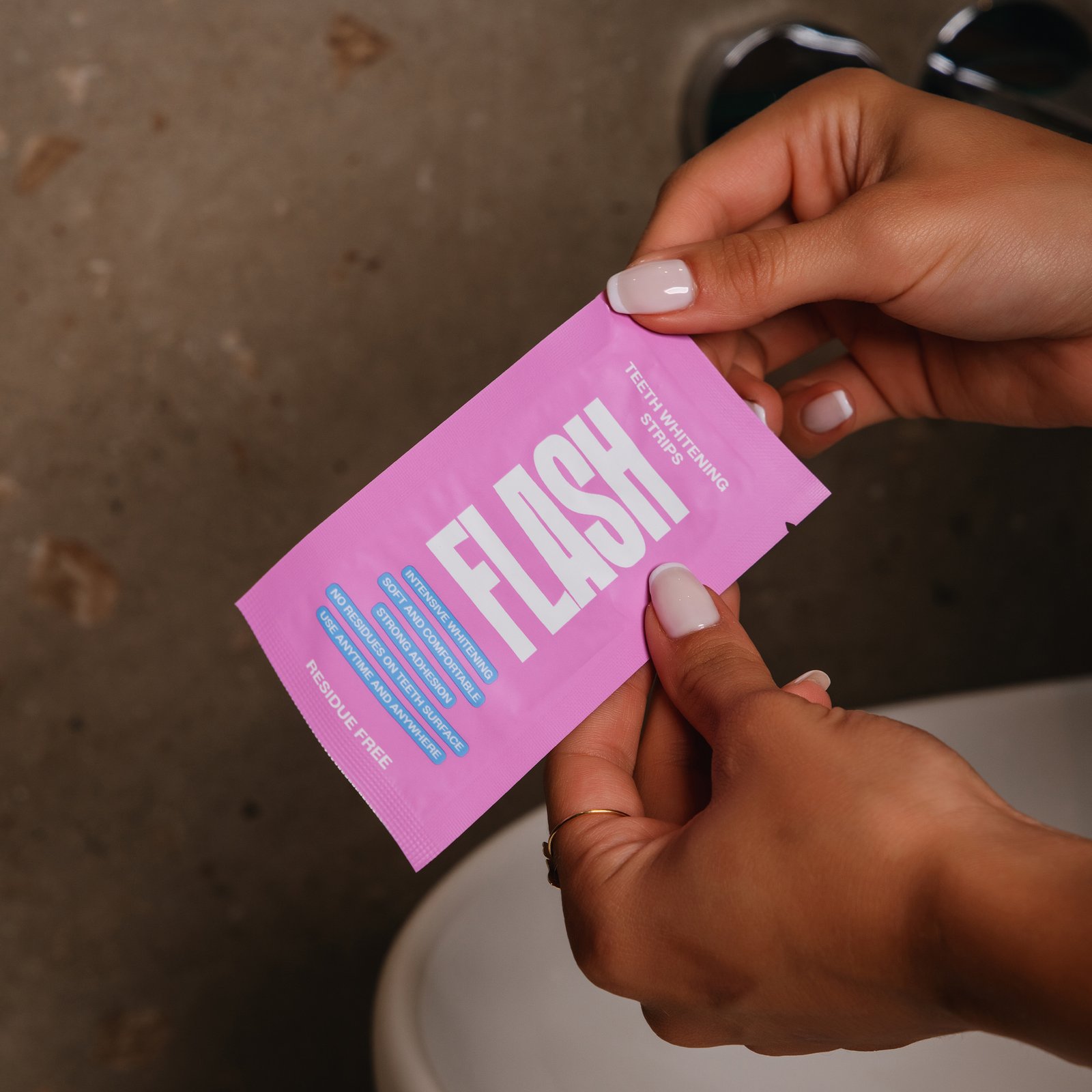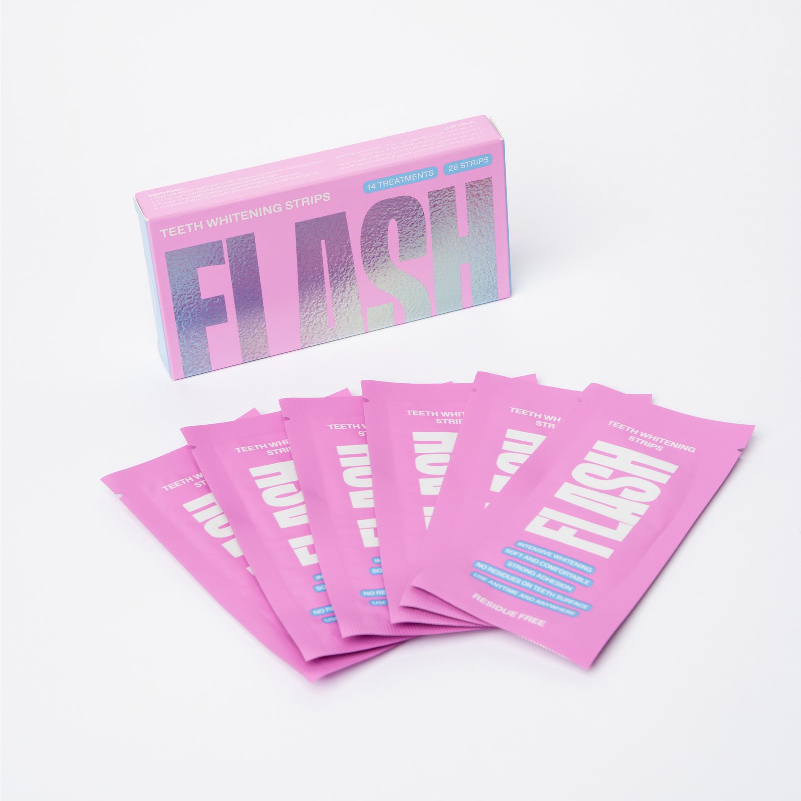 Achieve a noticeably brighter smile with Flash Teeth Whitening Strips! These soft, comfortable, and residue-free strips are designed to adhere securely to your teeth, ensuring an effective and even whitening experience. Infused with Hydrogen Peroxide & Raspberry Extract, they gently remove stains, leaving your teeth visibly whiter in just 14 days.