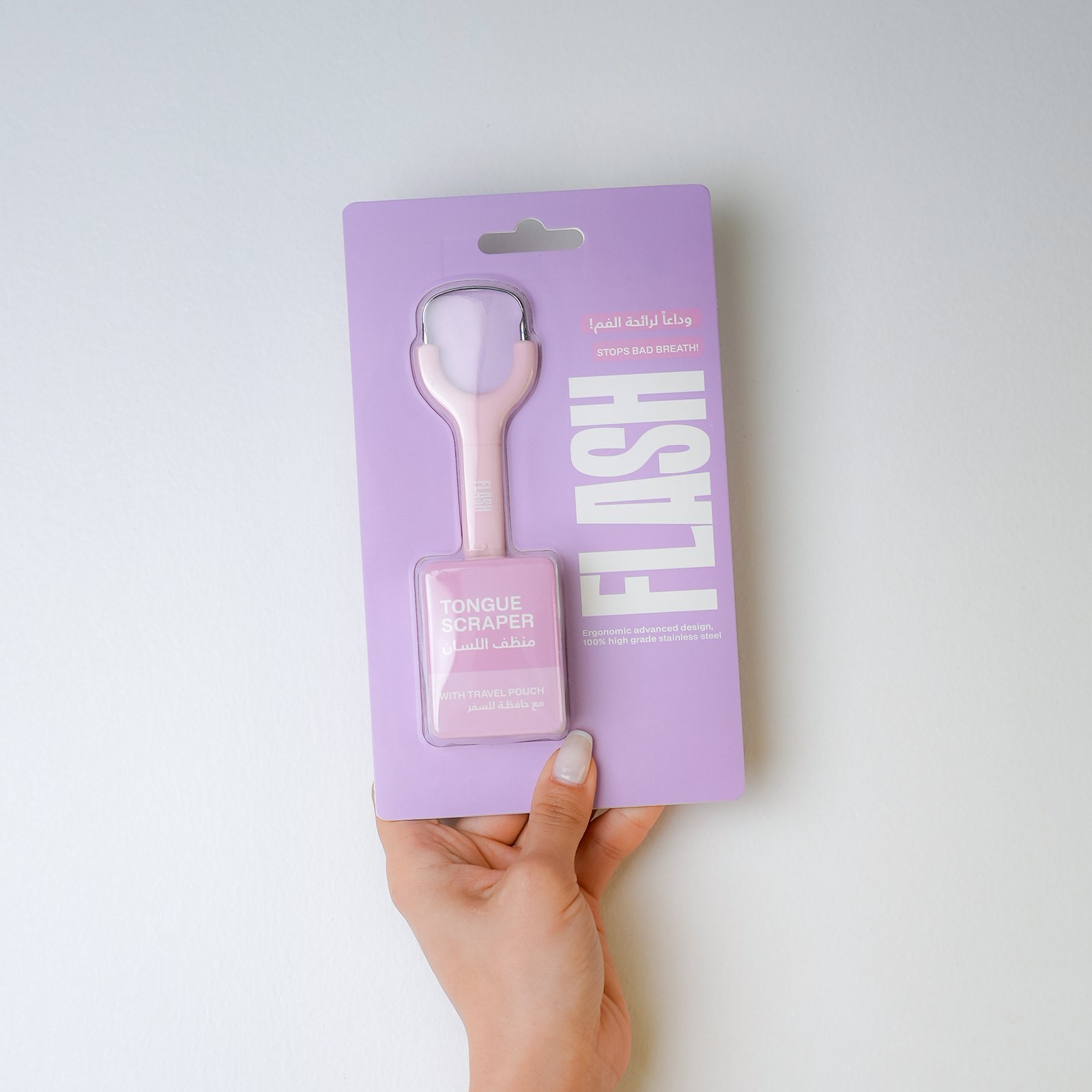 Experience long-lasting freshness with the FLASH Tongue Scraper, your go-to solution for eliminating bad breath and bacteria buildup. Designed with 100% high-grade stainless steel, this scraper effectively removes plaque, food debris, and dead cells, helping to maintain better oral hygiene and improved taste sensation.